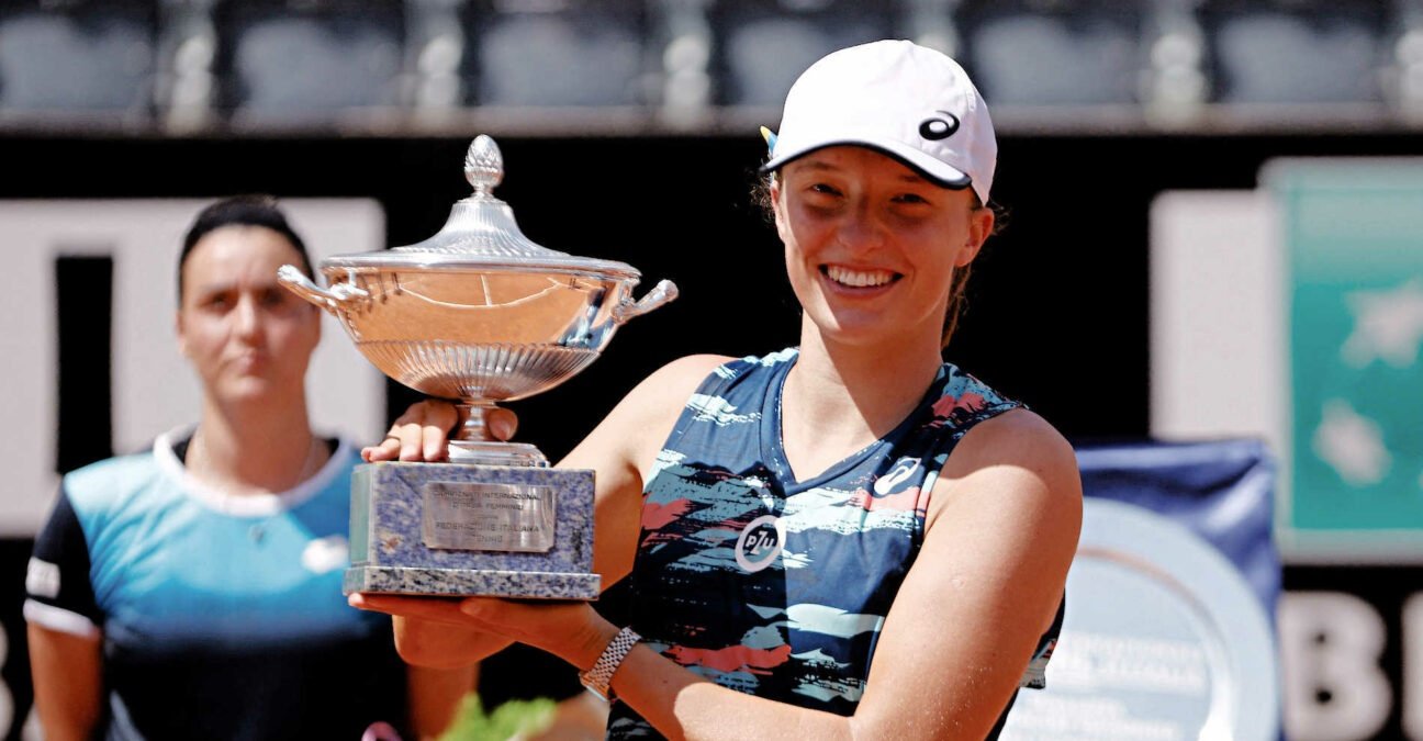 Iga Świątek wygrała tenisowy turniej WTA na kortach ziemnych w Rzymie! Polka, która jest liderką światowego rankingu, obroniła tym samym tytuł wywalczony przed rokiem. W finale pokonała Tunezyjkę Ons Jabeur (7 WTA) 6:2, 6:2. Spotkanie trwało godzinę i 22 minuty. Polka jest niepokonana już od 28 spotkań. To dla niej piąty wygrany turniej WTA z rzędu. Triumfowała wcześniej w imprezach w Dosze, Indian Wells, Miami i Stuttgarcie. Ostatni raz przegrała 16 lutego z Łotyszką Jeleną Ostapenko w Dubaju. Świątek ma już na swym koncie 8 wygranych turniejów rangi WTA.
