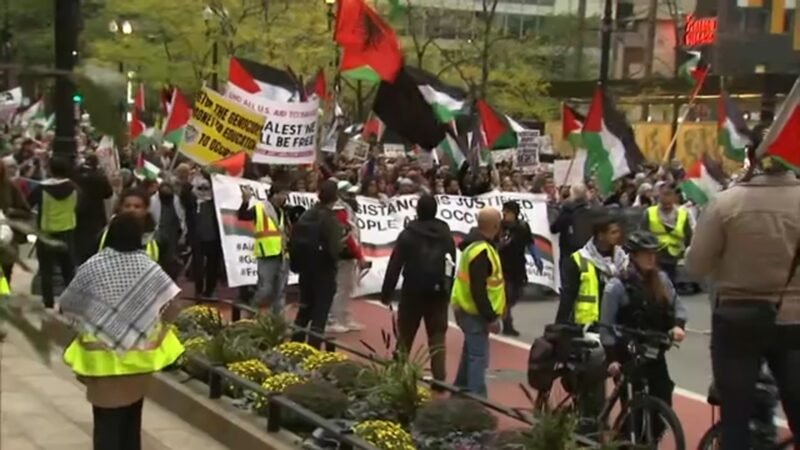 Propalestyński protest w centrum Chicago