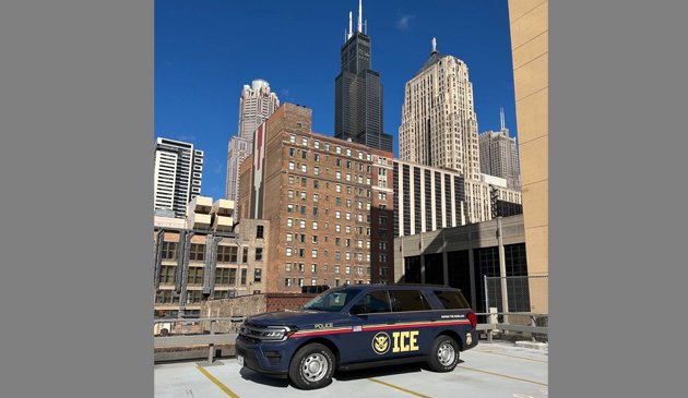 Samochód ICE na tle Willis Tower w Chicago potwierdza rozpoczęcie nalotów na nielegalnych imigrantów