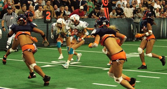 Chicago Bliss to jedna z 10 druzyn wchodzacych wsklad Lingerie Football League co mozna w latwo przetlumaczyc na Lige Footbolowa w bieliznie powstalej w 2004 roku. I wlasnie chodzi o to! Nie wazne jak dziewczyny graja i nawet jakie sukcesy odnosza, grunt ze piekne wygladaja i sciagaja na swoje mecze masy facetow tak, jak to mialo miejsce w Sears Arena w Hoffman Estates w miniony piatek 4 wrzesnia 2009 podczas rozpoczecia sezonu. Wlascicielem ligi jest byly trener Chicago Bears, Mike Dytka. Mecze tej ligi rzadza sie wlasnymi regulami. Kazda z druzyn reprezentuje 7 zawodniczek, dodatkowo sa tylko dwie 15 minutowe polowy, a mecz rozgrywa sie na 50-jardowym boisku. W pierwszym w tym sezonie meczu najseksowniejsze dziewczyny w Chicago pokonaly Miami Caliente 29:19. (Fot. Piotr Czarny – FAKTY CHICAGO)