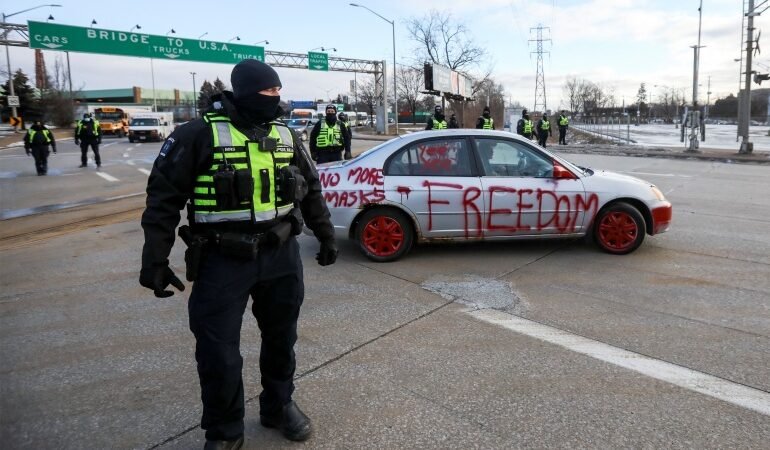 Kanadyjska policja zatrzymała 11 osób chcących wesprzeć blokadę przejścia z USA. Znaleziono przy nich broń